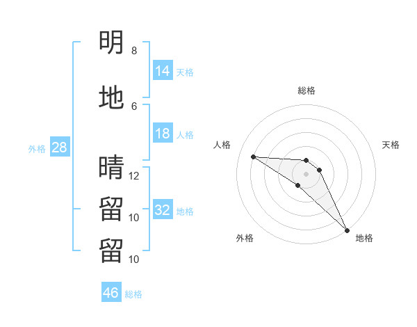 明地 晴留留さんの地格は32画の5点!