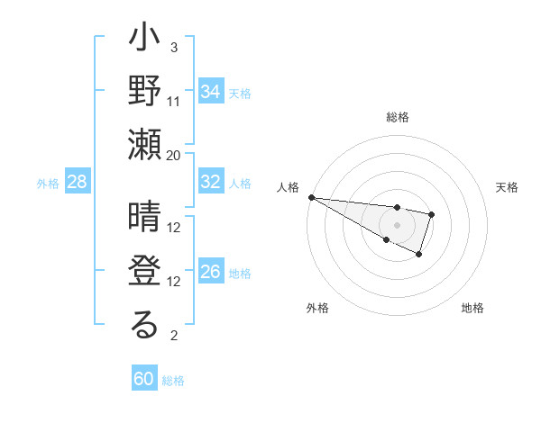 小野瀬 晴登るさんの天格は34画の2点