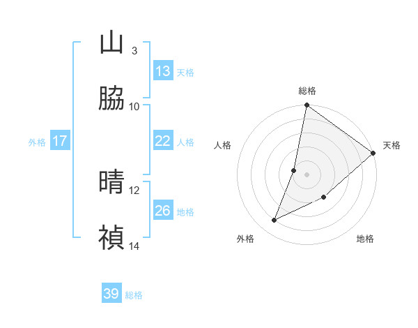 山脇 晴禎さんを姓名の画数から五運を鑑定