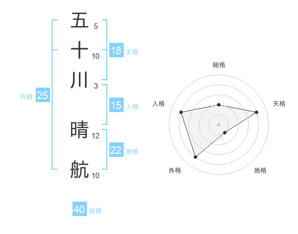 五十川 晴航さんを姓名の画数から五運を鑑定