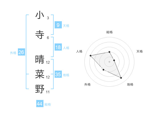 小寺 晴菜野さんを姓名の画数から五運を鑑定