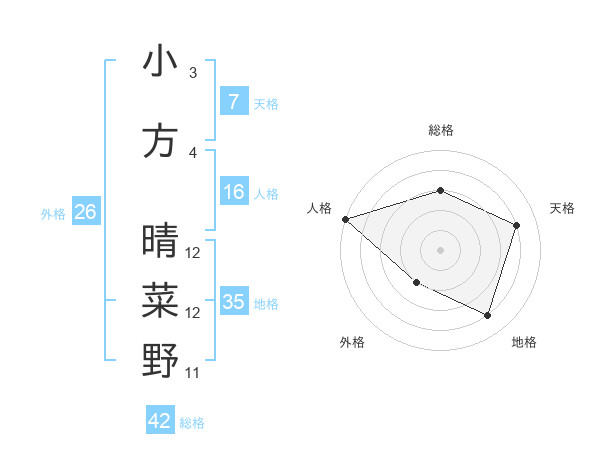 小方 晴菜野さんを姓名の画数から五運を鑑定