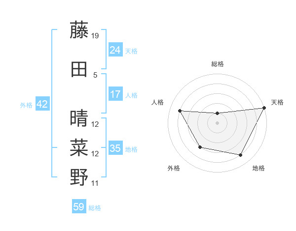 藤田 晴菜野さんを姓名の画数から五運を鑑定