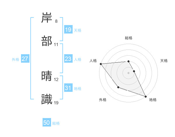 岸部 晴識さんを姓名の画数から五運を鑑定