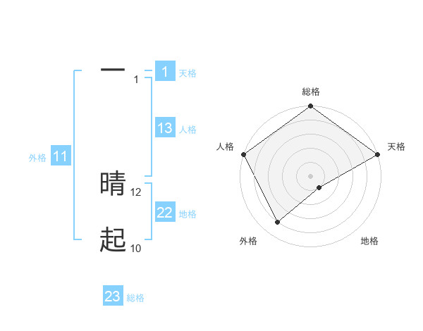 一 晴起さんの総格は23画の5点!
