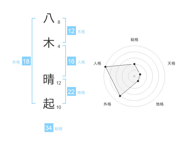 八木 晴起さんの総格は34画の2点!