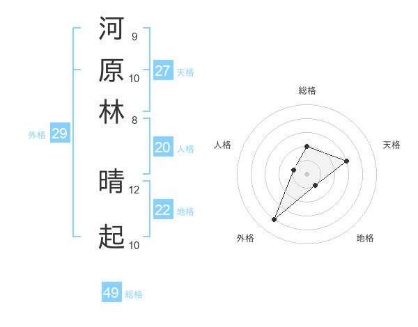 河原林 晴起さんを姓名の画数から五運を鑑定