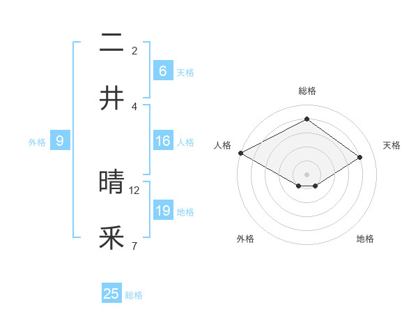 二井 晴釆さんを姓名の画数から五運を鑑定