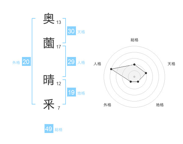 奥薗 晴釆さんの天格は30画の2点!