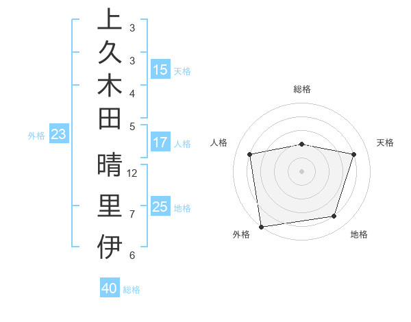 上久木田 晴里伊さんを姓名の画数から五運を鑑定