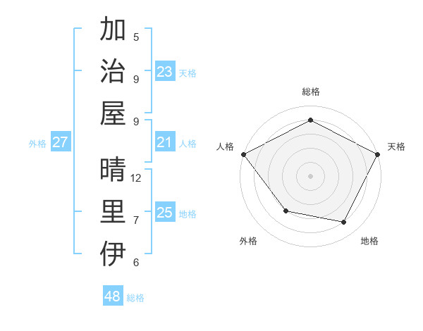 加治屋 晴里伊さんの天格は23画の5点!