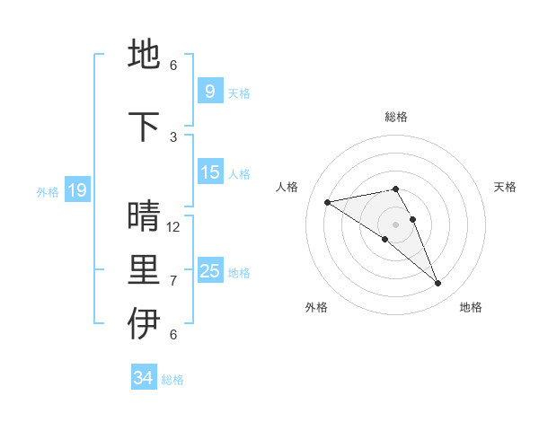 地下 晴里伊さんの総格は34画の2点!