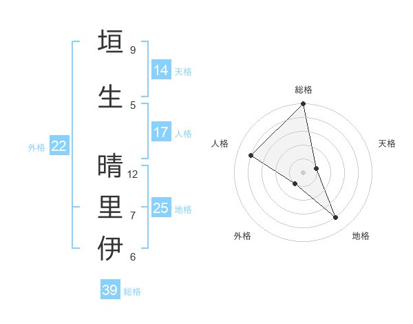 垣生 晴里伊さんの総格は39画の5点!