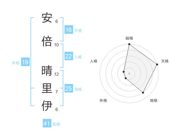 安倍 晴里伊さんの天格は16画の5点!
