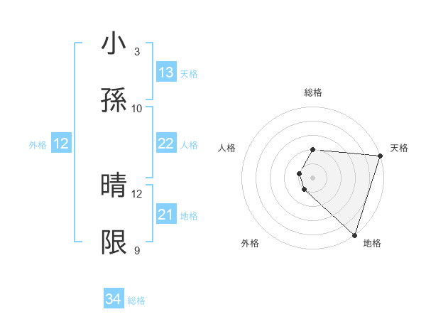 小孫 晴限さんの天格は13画の5点!