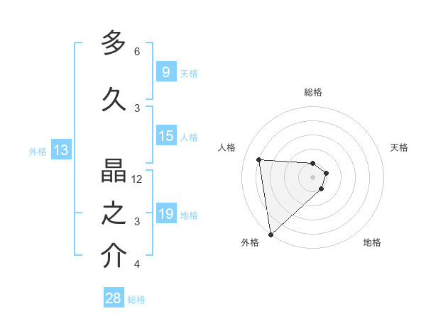多久 晶之介さんを姓名の画数から五運を鑑定