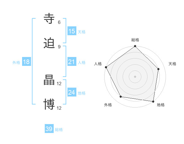 寺迫 晶博さんの総格は39画の5点!