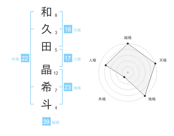 和久田 晶希斗さんを姓名の画数から五運を鑑定