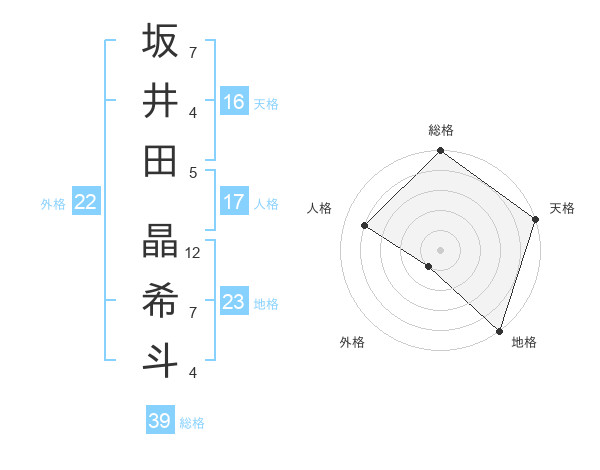 坂井田 晶希斗さんを姓名の画数から五運を鑑定