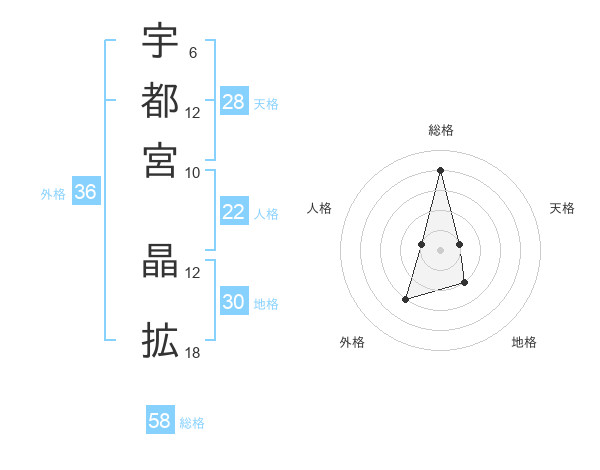 宇都宮 晶拡さんを姓名の画数から五運を鑑定
