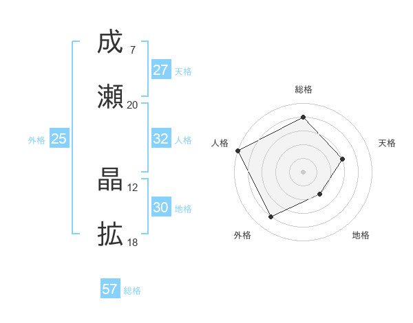成瀬 晶拡さんを姓名の画数から五運を鑑定