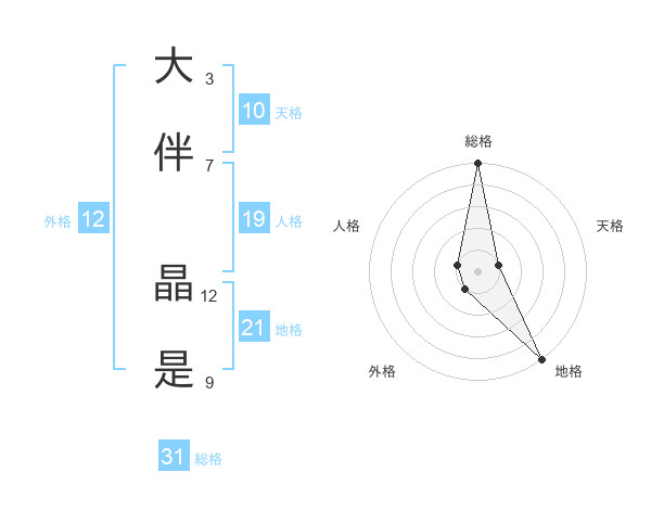 大伴 晶是さんの総格は31画の5点!