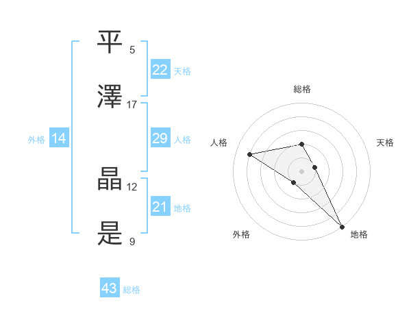 平澤 晶是さんを姓名の画数から五運を鑑定