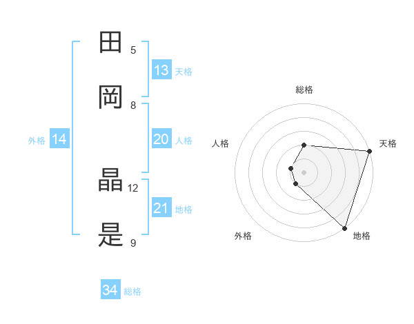 田岡 晶是さんを姓名の画数から五運を鑑定