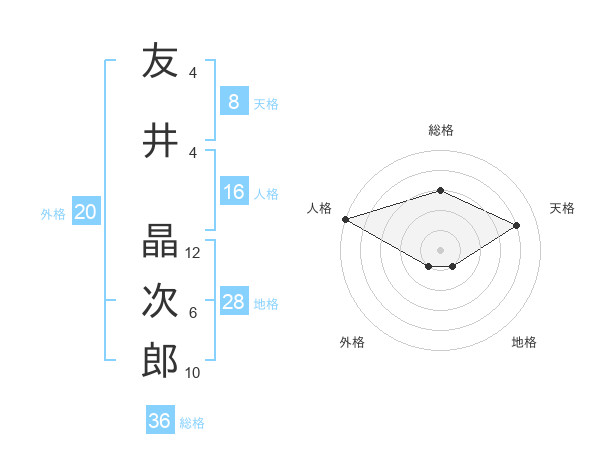友井 晶次郎さんを姓名の画数から五運を鑑定