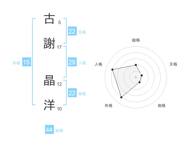 古謝 晶洋さんを姓名の画数から五運を鑑定