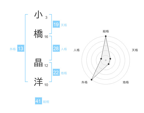 小橋 晶洋さんを姓名の画数から五運を鑑定