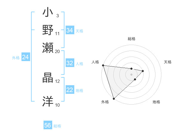 小野瀬 晶洋さんを姓名の画数から五運を鑑定