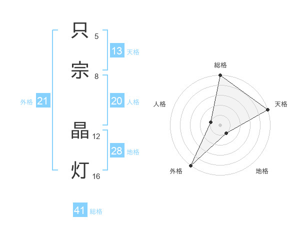 只宗 晶灯さんを姓名の画数から五運を鑑定