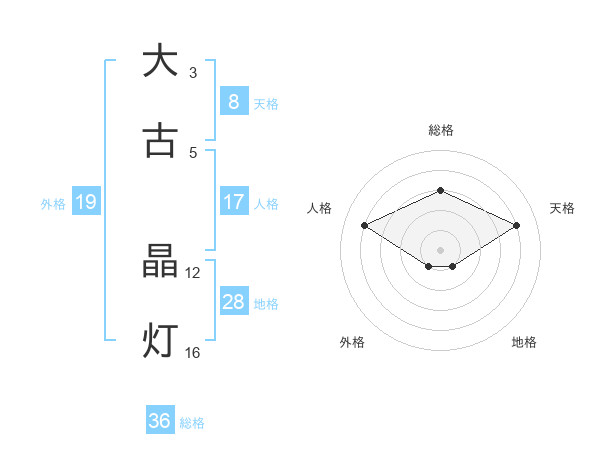 大古 晶灯さんの天格は8画の4点!