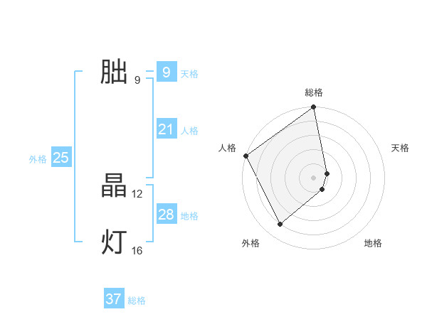 朏 晶灯さんの総格は37画の5点!