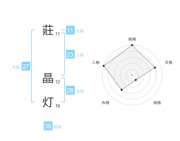 莊 晶灯さんを姓名の画数から五運を鑑定