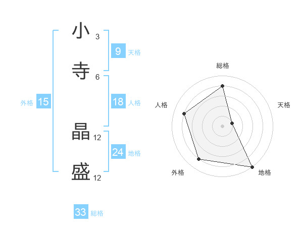 小寺 晶盛さんを姓名の画数から五運を鑑定