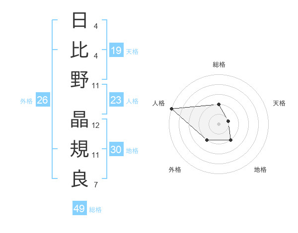 日比野 晶規良さんを姓名の画数から五運を鑑定