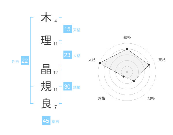 木理 晶規良さんを姓名の画数から五運を鑑定