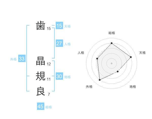歯 晶規良さんの総格は45画の4点!