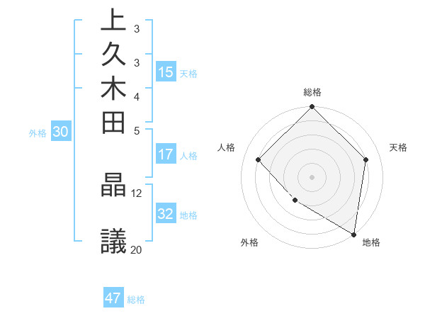 上久木田 晶議さんを姓名の画数から五運を鑑定