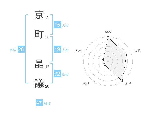 京町 晶議さんの総格は47画の5点!