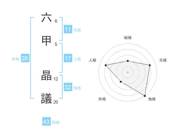 六甲 晶議さんを姓名の画数から五運を鑑定