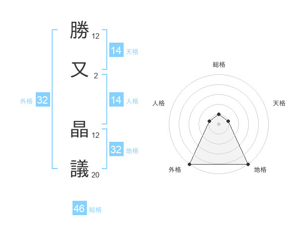 勝又 晶議さんを姓名の画数から五運を鑑定
