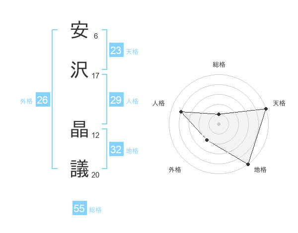 安沢 晶議さんを姓名の画数から五運を鑑定