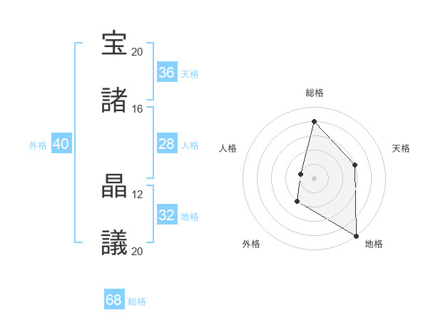 宝諸 晶議さんの総格は68画の4点!