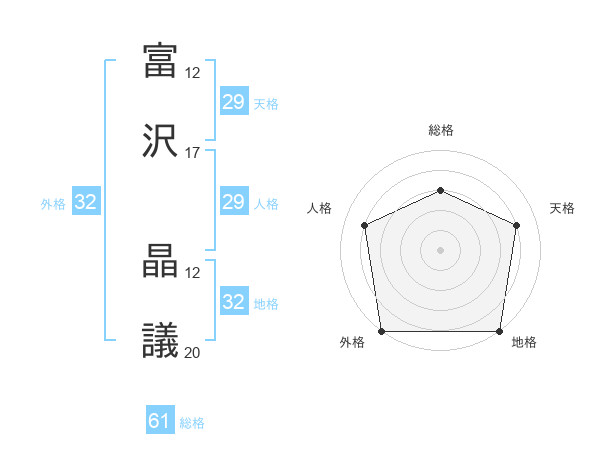 富沢 晶議さんを姓名の画数から五運を鑑定