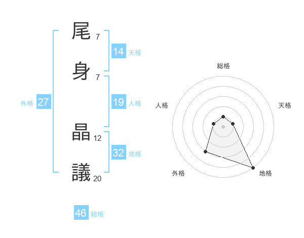 尾身 晶議さんの地格は32画の5点!
