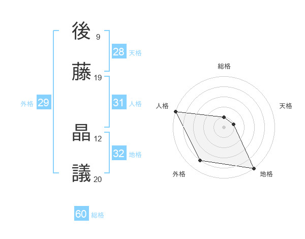 後藤 晶議さんを姓名の画数から五運を鑑定