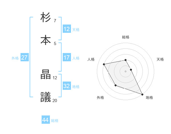 杉本 晶議さんを姓名の画数から五運を鑑定